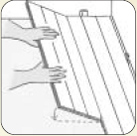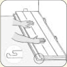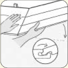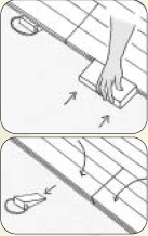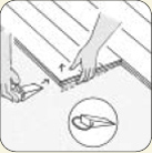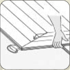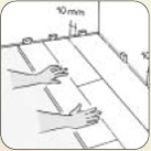 2. A második parkettát kb. 20°-os szögben tartva illessze az első parketta végéhez, majd fektesse le. Így haladjon végig az első soron. Az utolsó parkettát vágja le méretre: itt is hagyjon tágulási hézagot. A beillesztés előtt a horonyból az esetleges szennyeződést, forgácsot távolítsa el: a parketta feszülésének egyik oka lehet a szennyeződés.